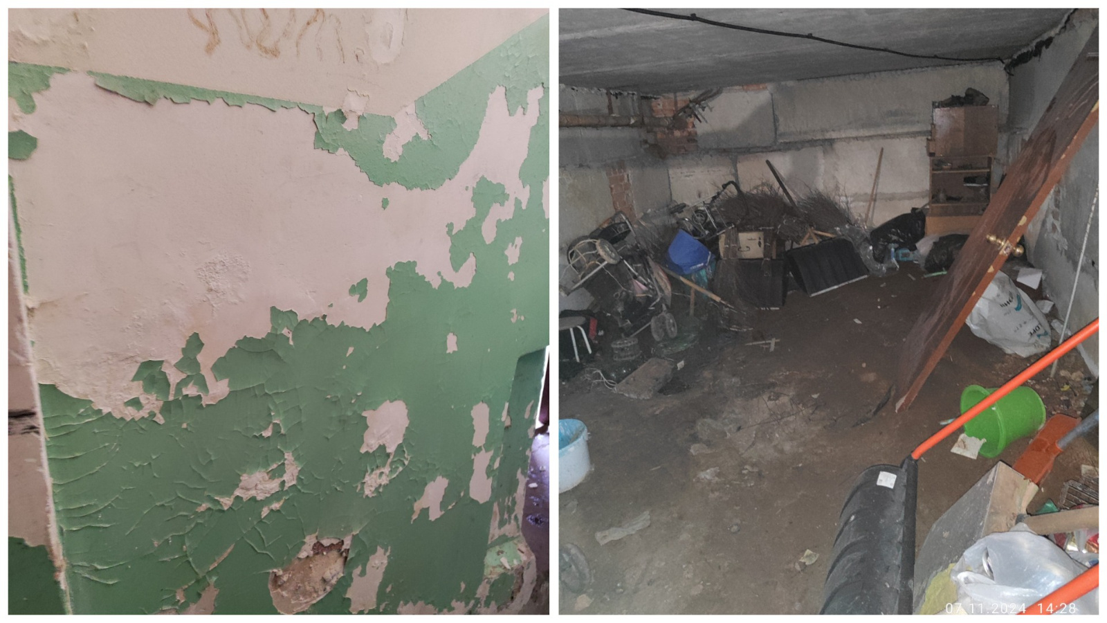 Жилищный инспектор посетил дом из-за жалобы собственника. По итогам обследования зафиксировано: мусор на чердаке и в подвале, нет изоляции на сетях отопления, просадки и трещина в отмостке, на лестничных площадках на стенах отслаивается краска, места общего пользования захламлены, нет доводчика на входной двери во 2 подъезде.