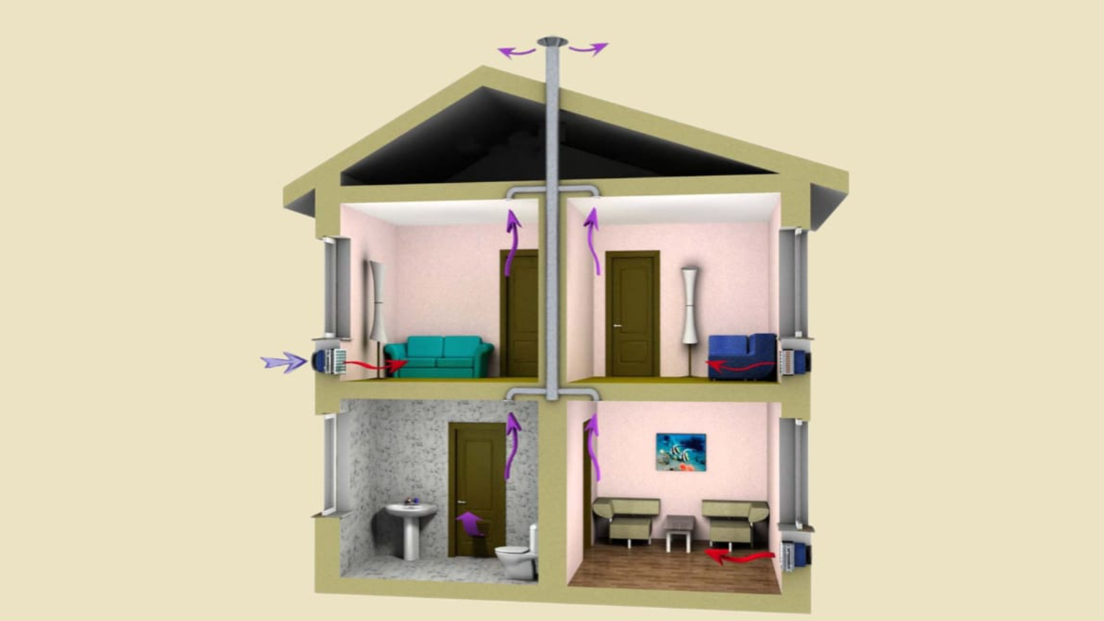 Система вентиляции в многоквартирных домах спроектирована на основе принципа естественной тяги. Дом «дышит»: свежий воздух попадает, а отработанный поднимается вверх через вертикальные вентиляционные шахты на крышу.