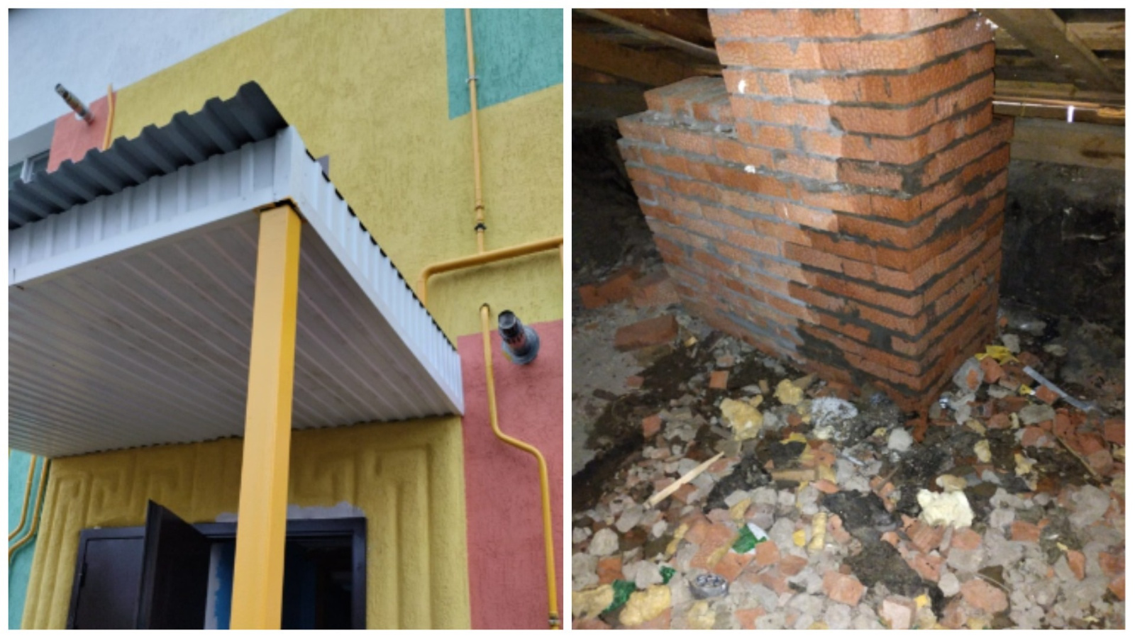 По первому адресу не утеплили стены в застекленных балконах, не установили отливы на подъездных козырьках, фановые трубы не вывели за пределы чердака и прочее. По второму адресу при замене системы водоотведения не провели заземление, не отремонтированы вентшахты.