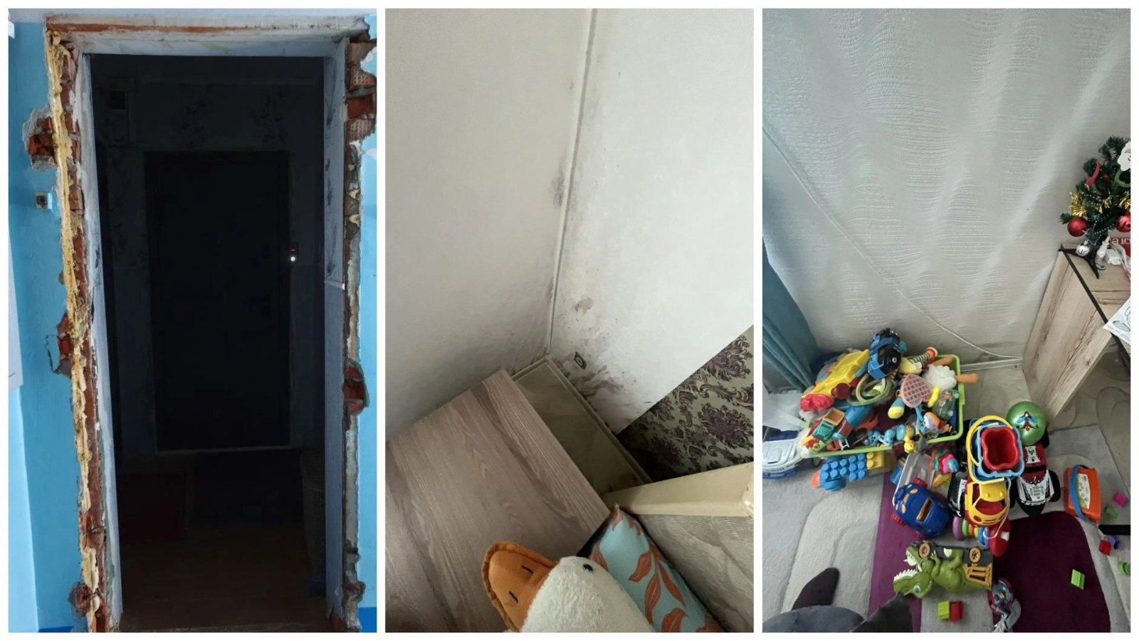 В доме № 11 по улице Спортивной жители столкнулись с более серьезной проблемой: мокрые стены и черная плесень в квартире. Несмотря на прошлогодний ремонт межпанельных швов, проведенный жилищниками, ситуация не улучшилась.