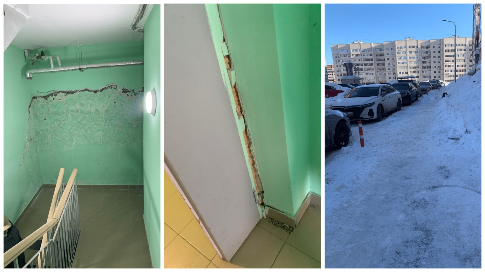 Не лучше обстоят дела и в корпусе 5. Здесь со стен паркинга отсыпается штукатурка и краска, что не только портит эстетику, но и может привести к дальнейшему разрушению конструкций. В кладовых на цокольном этаже также не проводится регулярная уборка, что создает антисанитарные условия.