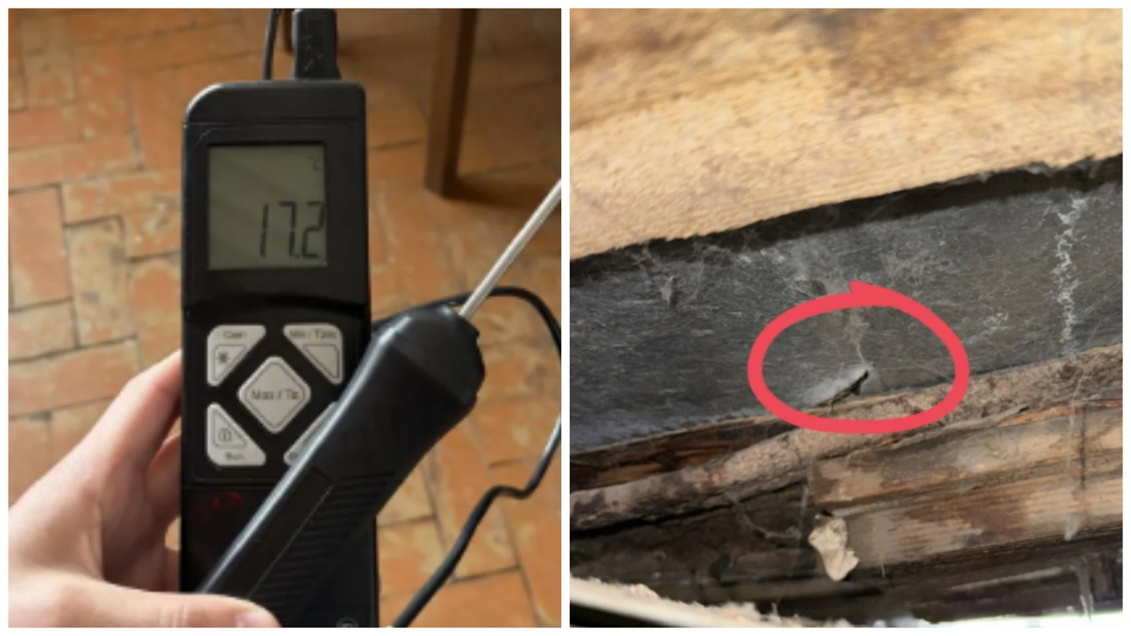 Проверка подтвердила все факты, изложенные пенсионером: кровля дырявая, стропильная система мокрая, температура в квартире всего +17,3 градуса в двух комнатах, при том что теплоноситель поступает в дом с температурой +87 градусов, что значительно выше нормы.