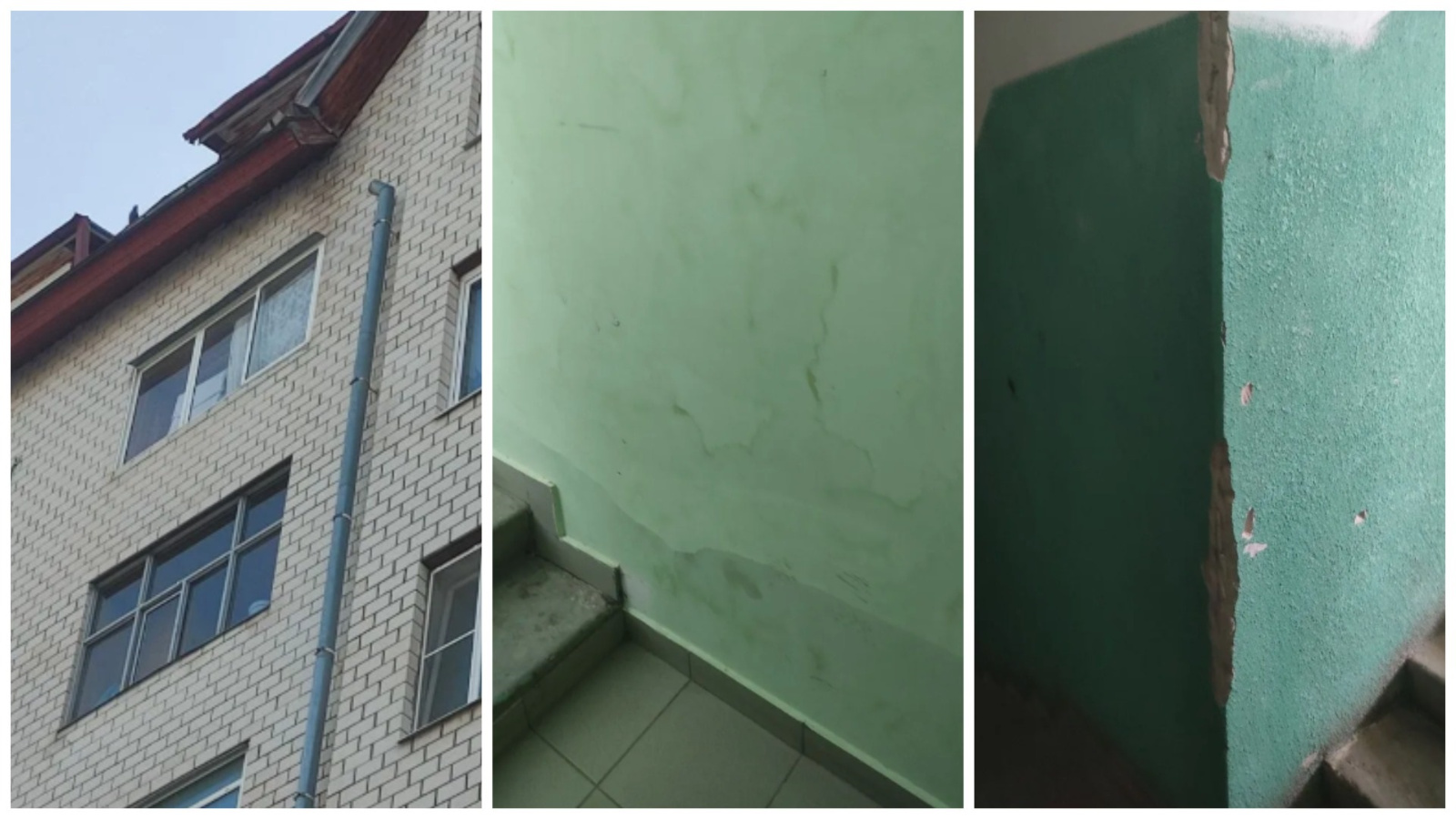Кроме того, отслаивается штукатурка со стен в подъезде.