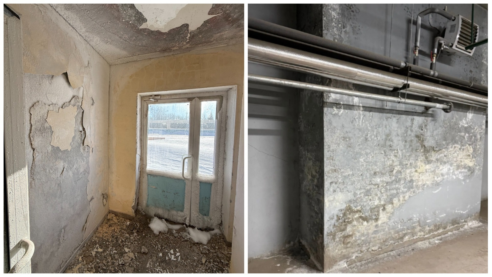 - Наледь и конденсат: наличие наледи и конденсата указывает на нарушения температурно-влажностного режима, что может привести к дальнейшему разрушению конструкций.