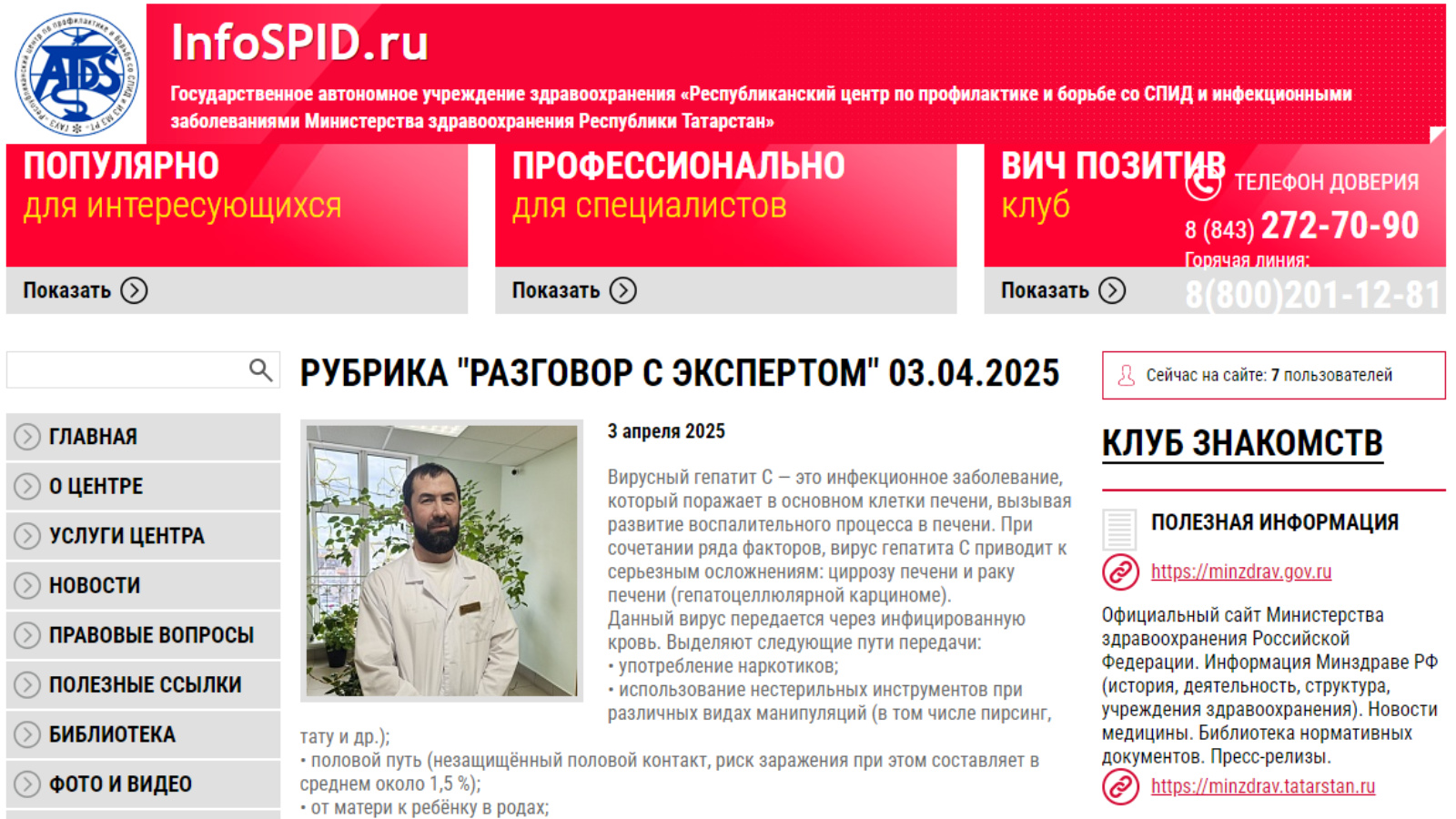 «СПИД һәм йогышлы авыруларны профилактикалау һәм аларга каршы көрәш буенча республика үзәге» ДАССУ Әлмәт шәһәрендәге филиалының ВИЧ-инфекцияле авыруларны медик-социаль тернәкләндерү бүлеге мөдире Д.М.Солтанов бик мөһим темага – вируслы С гепатитына кагылды.