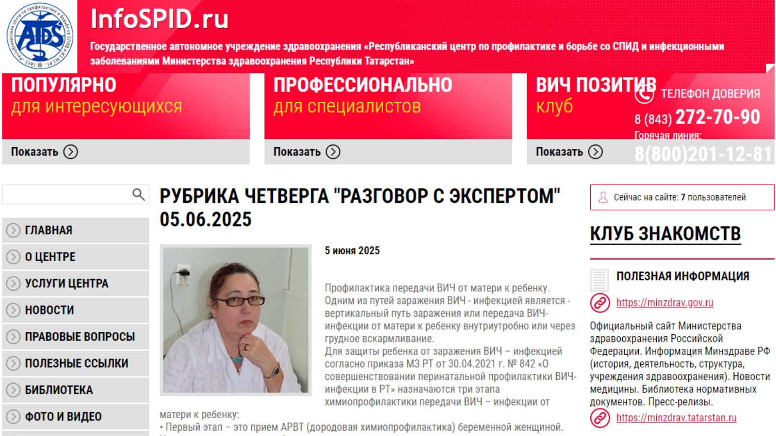 СПИД үзәгенең Чаллы шәһәрендәге филиалы табиб-педиатры Н.М.Маслова анадан балага ВИЧ йоктыруны профилактикалау турында сөйләде.